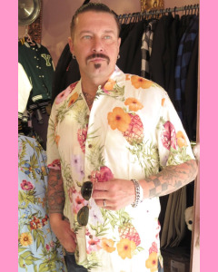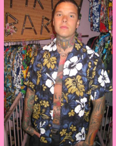 Garageland has over 150 different original Hawaiian shirts in stock all year around. Rayon with coconut buttons. See in Hawaiian section.